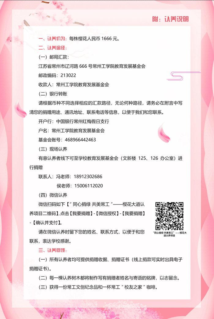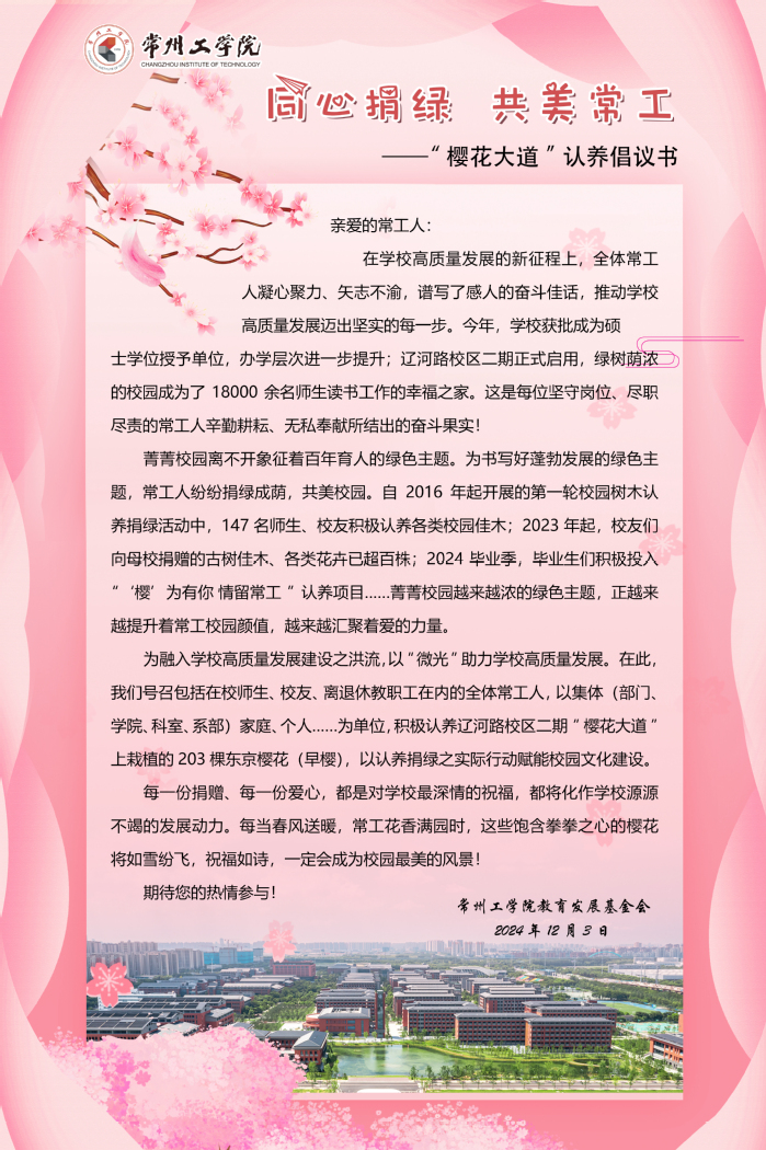 同心捐绿 共美常工——“樱花大道”认养倡议书