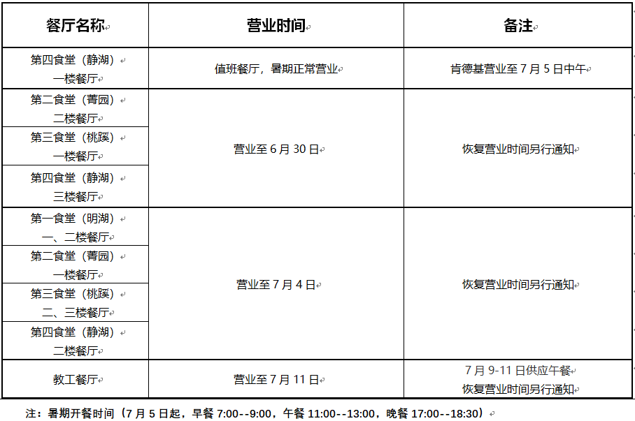 根据学校2024-2025学年第二学期结束和新学期开学安排及师生需求实际情况,现将暑假期间后勤保障服务项目安排通知如下: